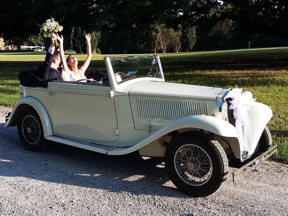 Eleganza senza tempo: Le linee sinuose e i dettagli raffinati delle auto d’epoca emanano un’eleganza senza tempo che si adatta perfettamente all’atmosfera di un matrimonio.