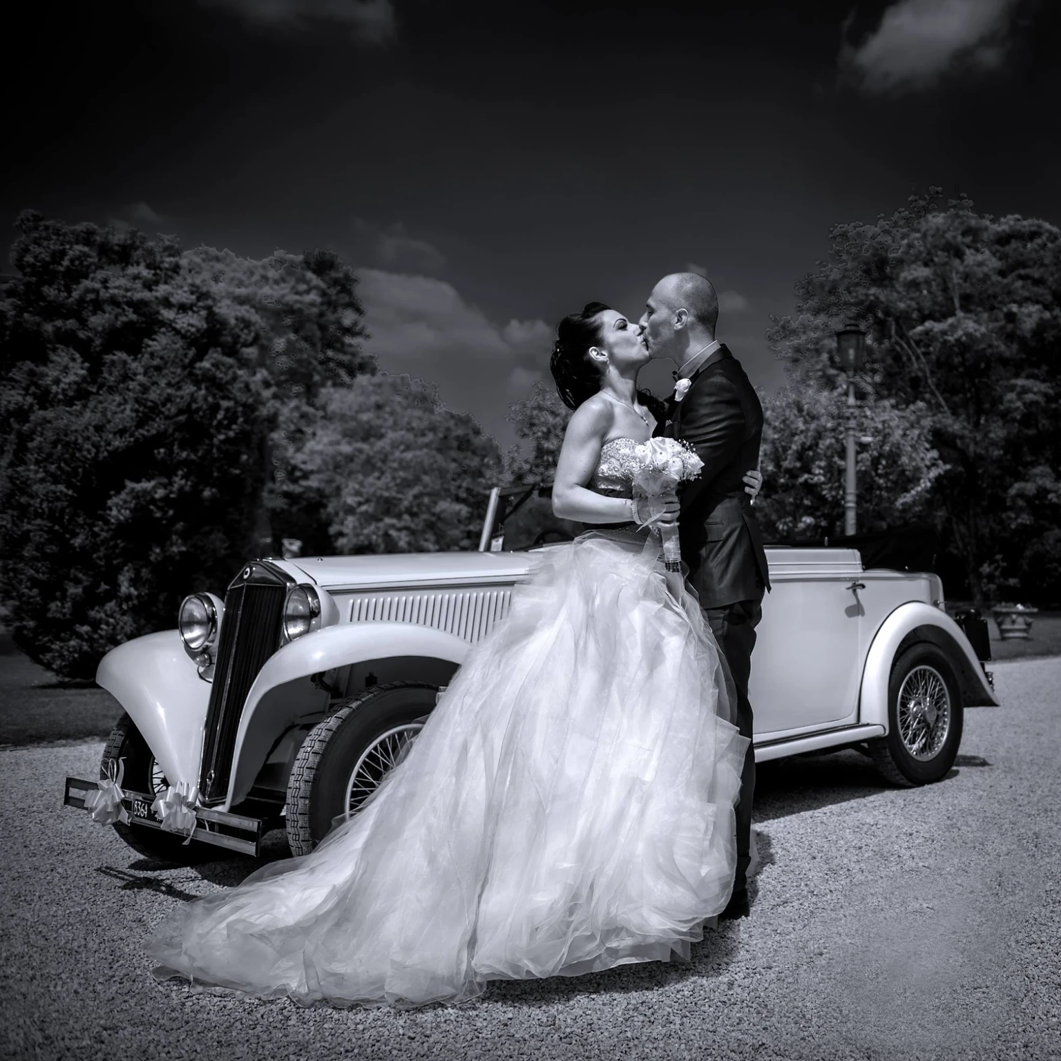 Fotografie indimenticabili: Un’auto d’epoca farà da sfondo perfetto per le tue foto di matrimonio, creando scatti unici e suggestivi.